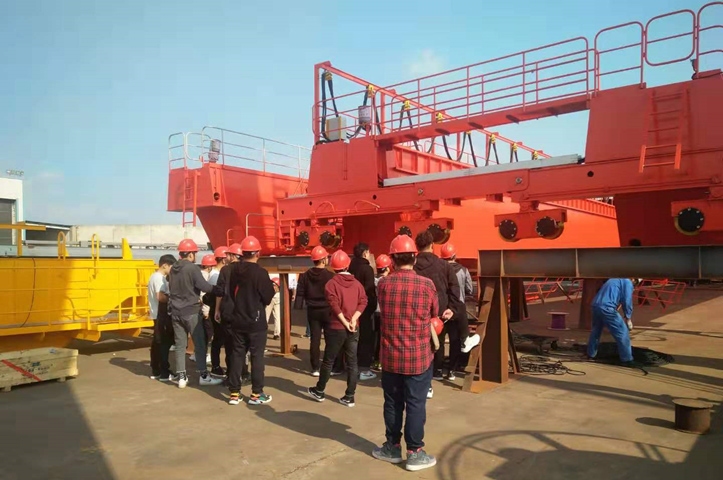 随後,參觀隊伍又(yòu)前往碼頭,參觀了(le)正在拼裝γ 的(de)卸船(chuán)機(jī)、桅杆吊等大(d÷>à)型起重設備。