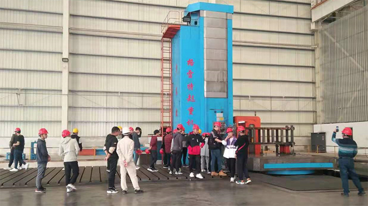 在公司大(dà)型數(shù)控機(jī)加工(gōng)車(chē)間(ji λ±ān),大(dà)多(duō)數(shù)同學均是(shì)第一λ€§(yī)次看(kàn)到(dào)該類大(dà)型的(®★de)龍門(mén)銑床、落地(dì)镗床,顯得(de♠>)格外(wài)好(hǎo)奇,圍繞大(dà)龍門(mén)銑床的α ¥≠(de)加工(gōng)精度、行(xíng)程和(hé)加工(gōng)≠™∑範圍等提出了(le)各種問(wèn)題,車(chē)間(jiān)負責人(₹• rén)張學建一(yī)一(yī)解答(dá),雙 €方交流氣氛熱(rè)烈而融洽。