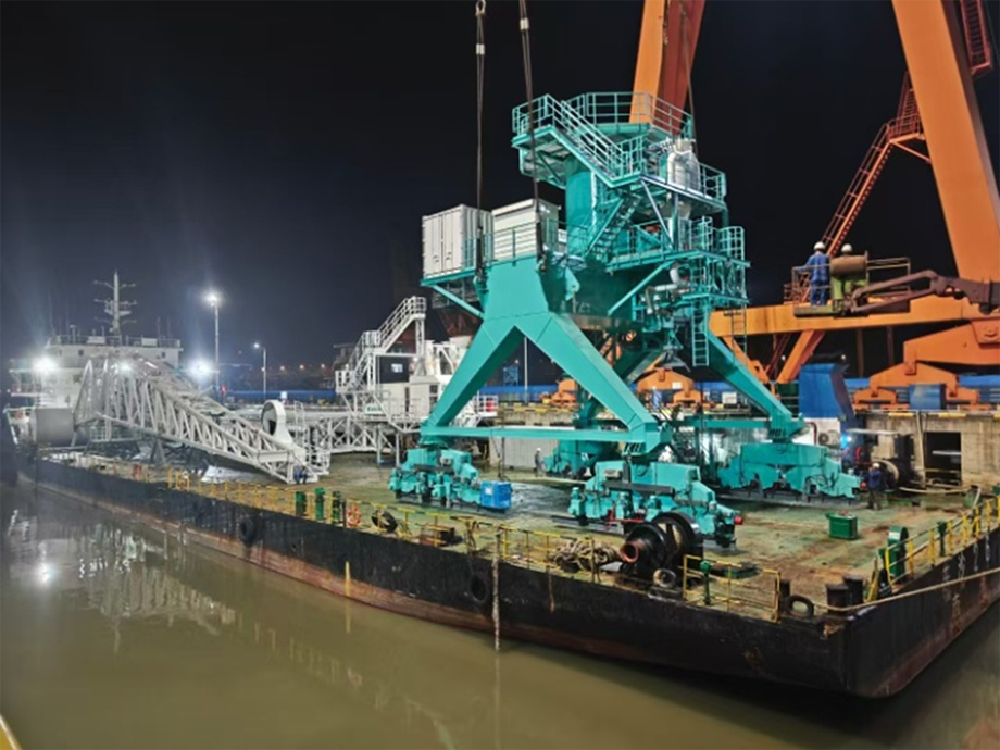5月(yuè)16日(rì)晚,夜幕深垂,格雷特重工(gōng)科(kē)☆π™φ技(jì)碼頭依舊(jiù)燈火(huǒ)通(tōng)明(míng),13€±00T/H卸船(chuán)機(jī)順利完成大(dà)件(jiàn)裝π $船(chuán),啓航前往菲律賓。