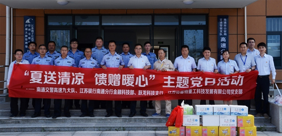 6月(yuè)29日(rì)下(xià)午,江蘇α™±銀(yín)行(xíng)南(nán)通(tōng¶←÷•)分(fēn)行(xíng)金(jīn)融科(kē)技(jì)部↑ 、躍龍科(kē)技(jì)支行(xíng)黨支部,聯合北京環海起重工程機δ"€械有限公司黨支部、江蘇格雷特重工(gōng)科(kē)技(jì)發展有(y↔≤✔ǒu)限公司黨員(yuán)同志(zhì),共同舉辦“夏送清涼 饋¶γ贈暖心”主題黨日(rì)活動。兩支黨員(yuán)隊伍在φ各自(zì)黨支部書(shū)記的(de)帶領下(x♥ià),來(lái)到(dào)南(nán)通(tōng)交警高(gāo)™₽速九大(dà)隊,為(wèi)交警同志(zhì)送上(shàn&≠¥g)一(yī)份夏日(rì)的(de)清涼。